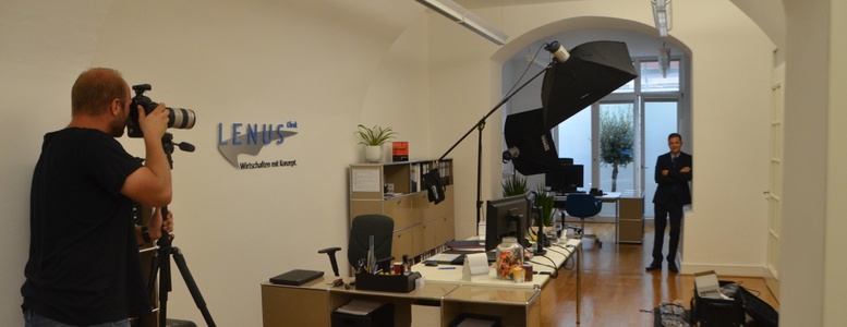 Damit wir als neue Kollegen von Anfang an auf der Website und in den Unternehmenspräsentationen als Teil des Teams gezeigt werden können, fand direkt in der ersten Woche noch ein Fotoshooting statt. Dazu kam der Fotograf Tobias Kramer aus Aschaffenburg zu uns ins Büro. Für uns war es sehr spannend den Aufbau des Shooting-Sets mit dem technischen Equipment und den individuellen Lichteinstellungen kennenzulernen. So konnten wir einen Blick hinter die Kulissen werfen und Herrn Kramer bei seiner Arbeit über die Schulter schauen. Bei der Auswahl unseres eigenen Bildes waren wir natürlich ebenfalls mit von der Partie.